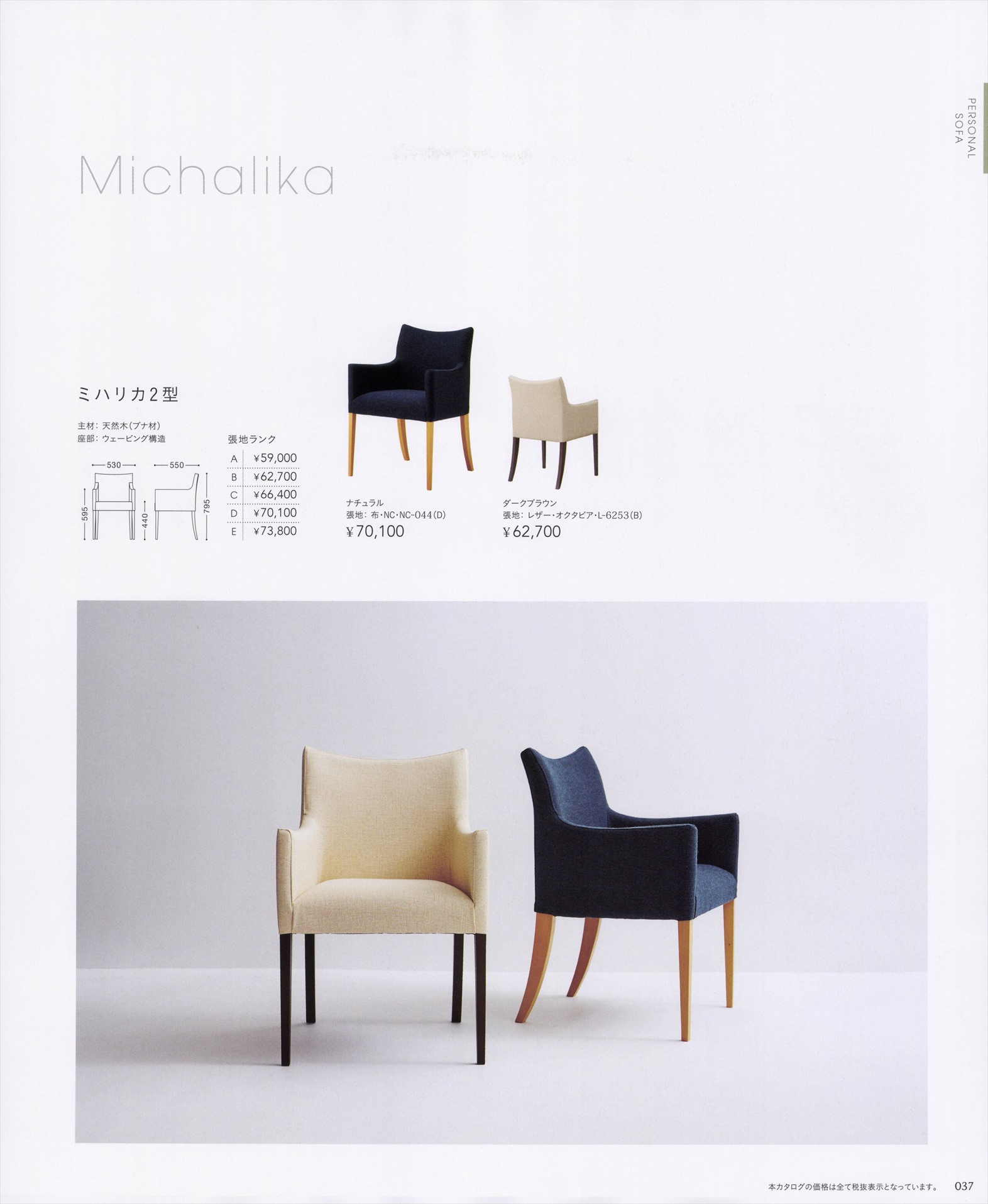 ミハリカ2型 木部色2色より選択 張地ランクAにての価格