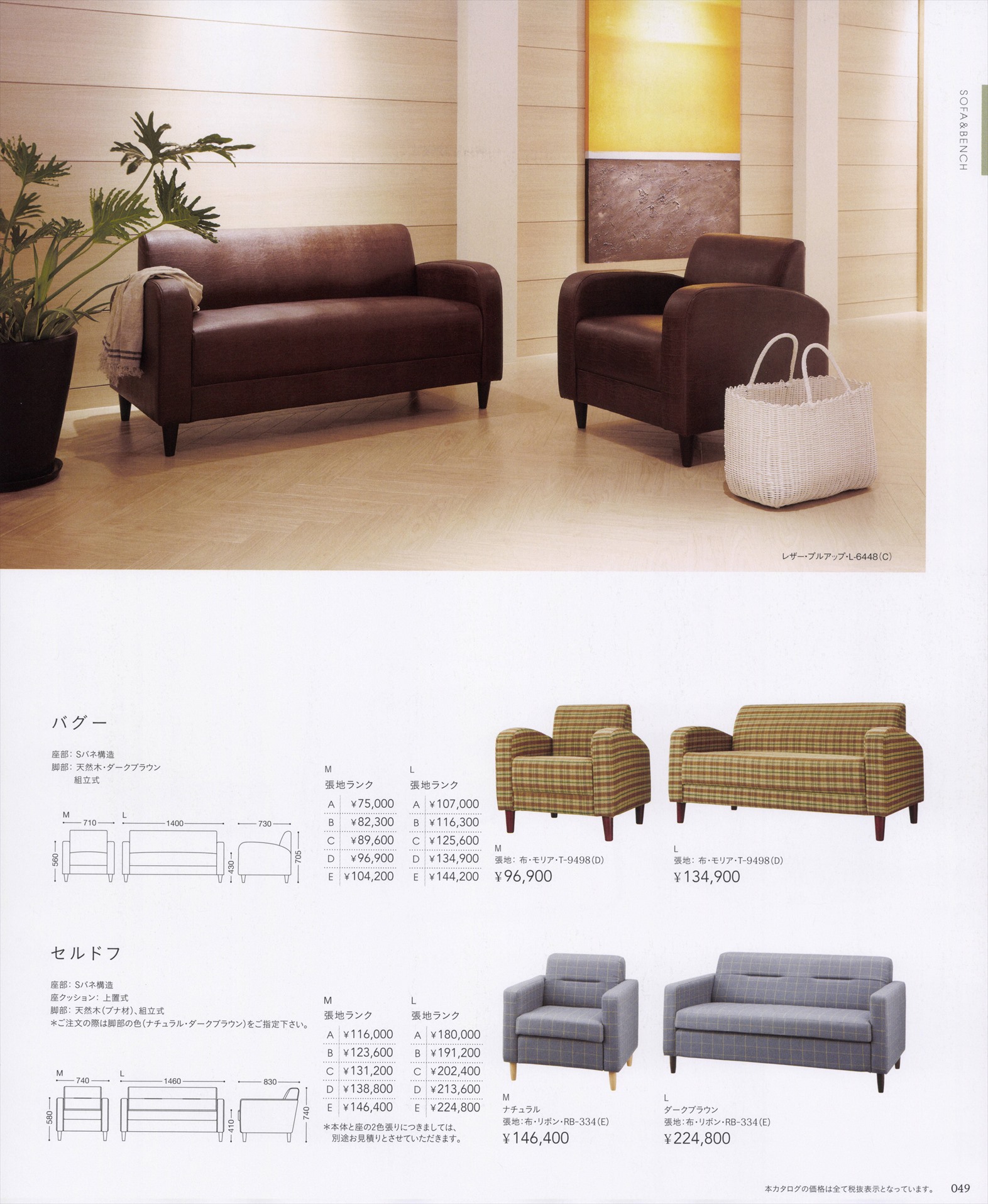 セルドフ L 張地色Aランクにての価格 (2,5人掛け)脚部色2色
