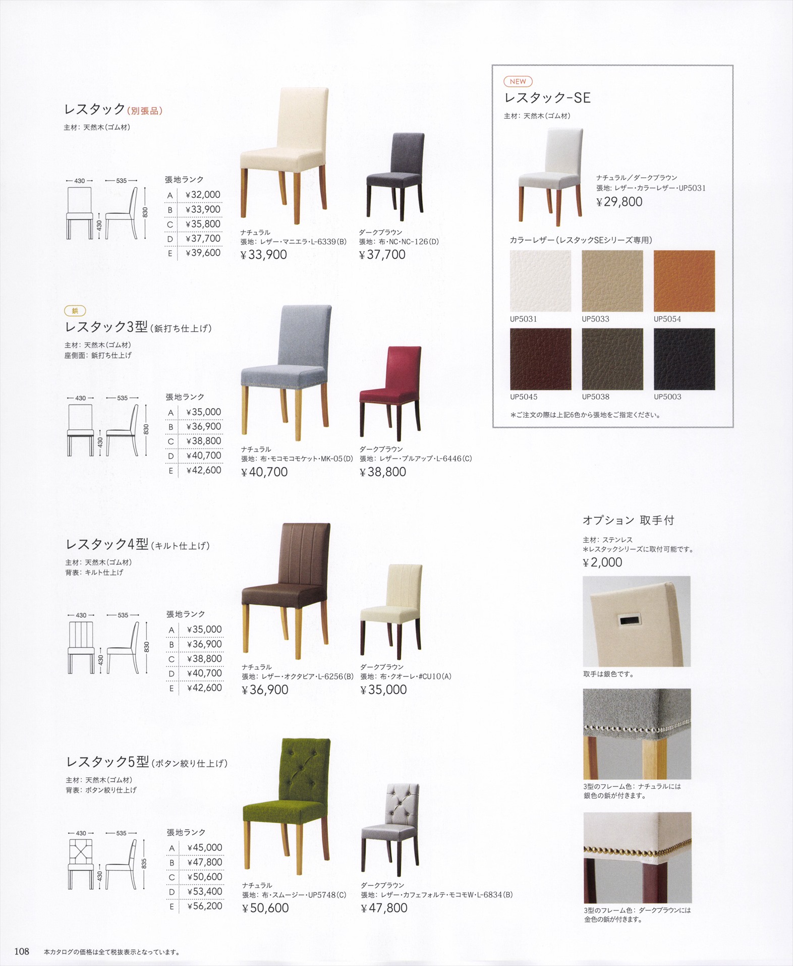 レスタック(別張品),レスタック-SE,レスタック3型(鋲打ち仕上げ),レスタック4型(キルト仕上げ),レスタック5型(ボタン絞り仕上げ),オプション 取手付 / レスタックS70(別張品),レスタックS80(別張品)