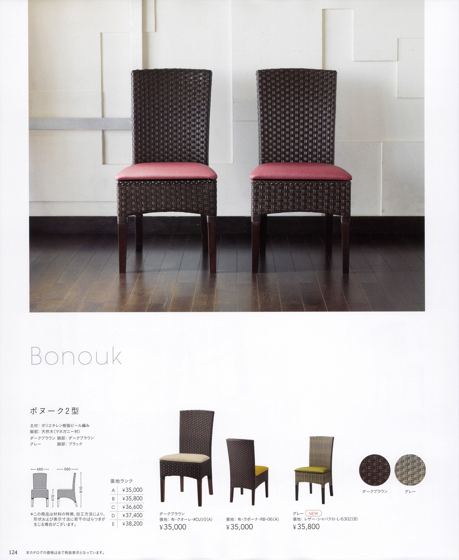 ボヌーク2型 ポリエチレンピール樹脂編み 張地Aランクにての価格