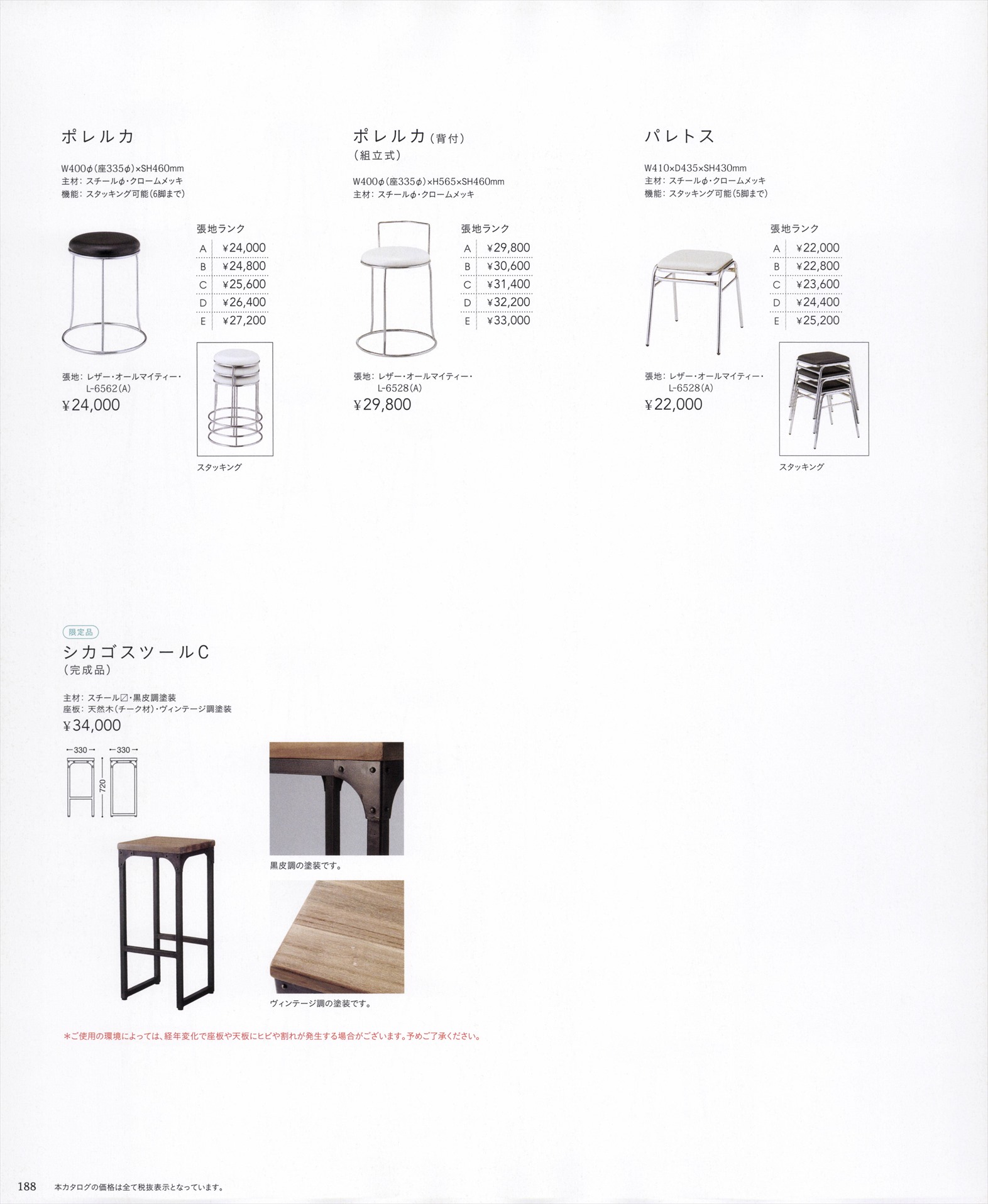 ポレルカ 張地ランクAにての価格 スタックキング6脚まで可能